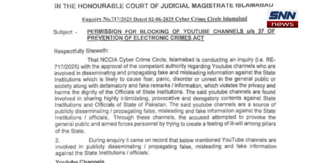 شمائلہ اسلم اسکینڈے نیوین نیوز ایجنسی بیورو چیف پاکستان اسلام آباد کی عدالت نے ستائیس یو ٹیوب چینل کو بلاک کرنے کا حکم دے دیا۔ گوگل کو بھی کارروائی کے لیے لکھ دیا گیا۔ ایف آئی اے سائبر کرائم سرکل کے سب انسپکٹر کی درخواست پرجوڈیشل مجسٹریٹ عباس شاہ نے مطیع اللہ جان، اسد طور […]